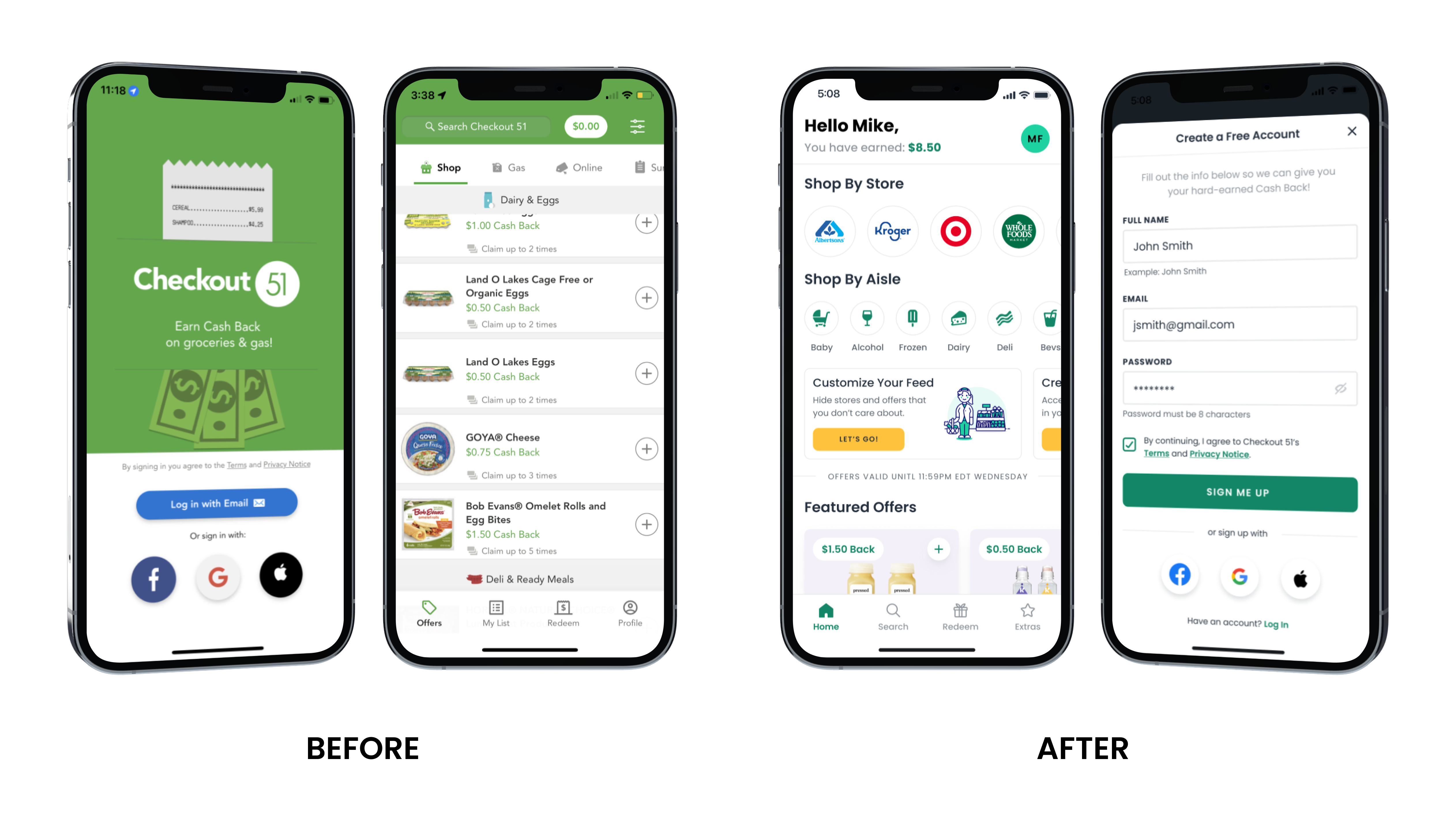 Product Checkout 51 (iOS + Android consumer cashback app)